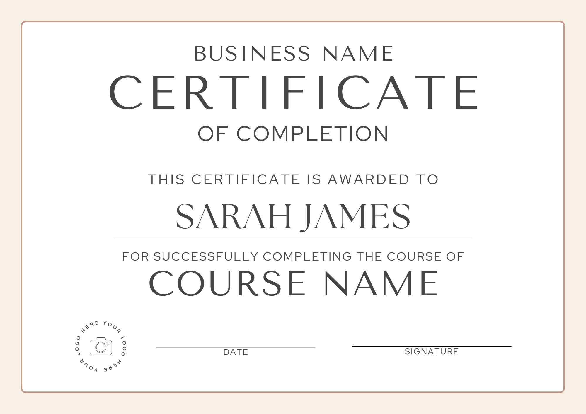 Editable Certificate of Completion Template – Fully Customizable in Canva