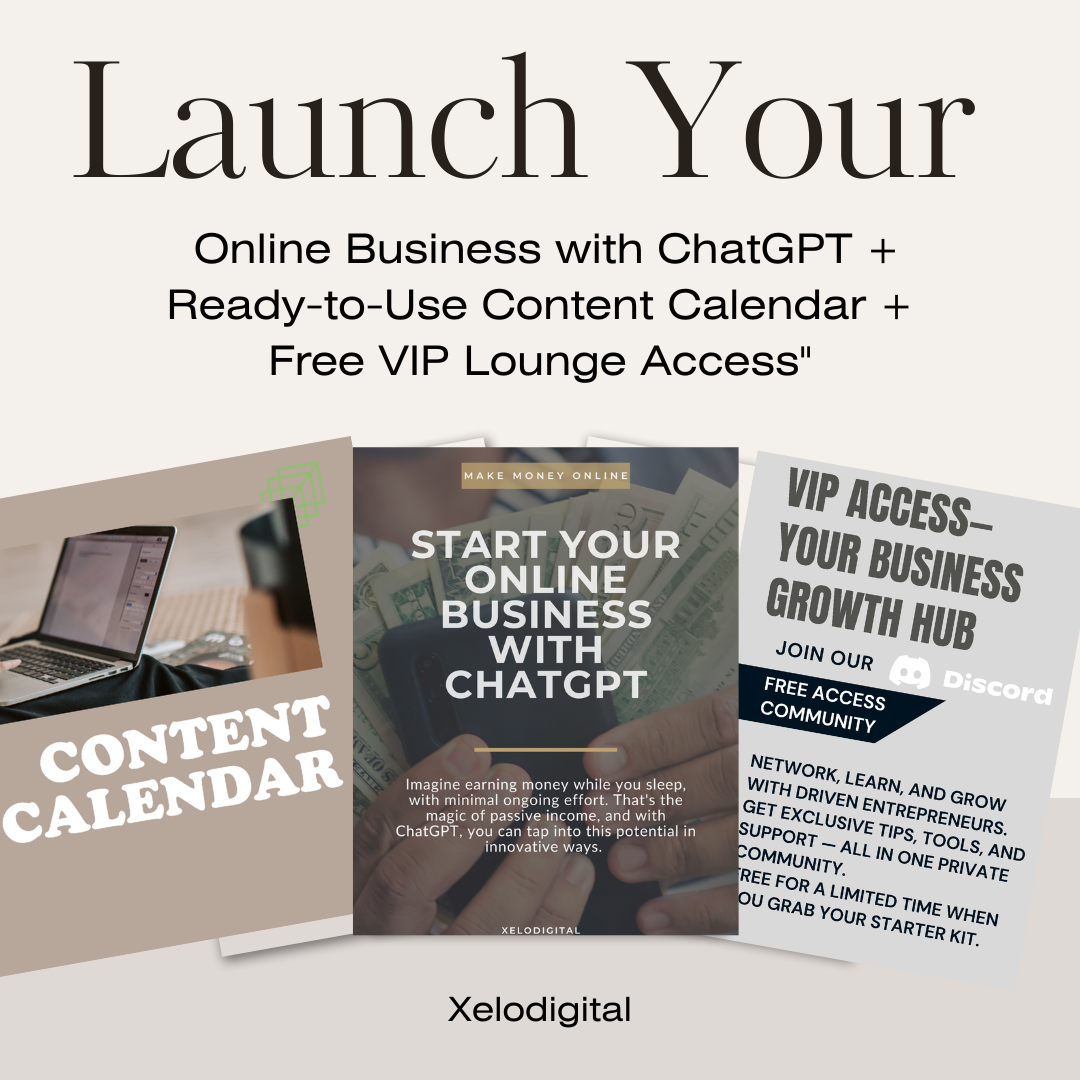 Take your business idea from zero to launch with the ChatGPT Content Calendar and Free VIP Lounge Access Bundle. This powerful package gives you everything you need to start and grow your online business faster.